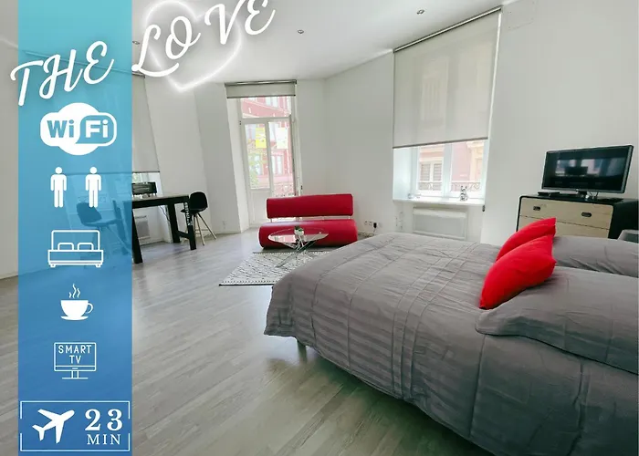 The Love intimité au cœur du centre-ville 牟罗兹设有小厨房和配阳台,休息区 和卫星频道平板电视的客房. 该1间卧室公寓距离米卢斯动植物园不到25分钟的步行路程,方便前往市区一切景点.